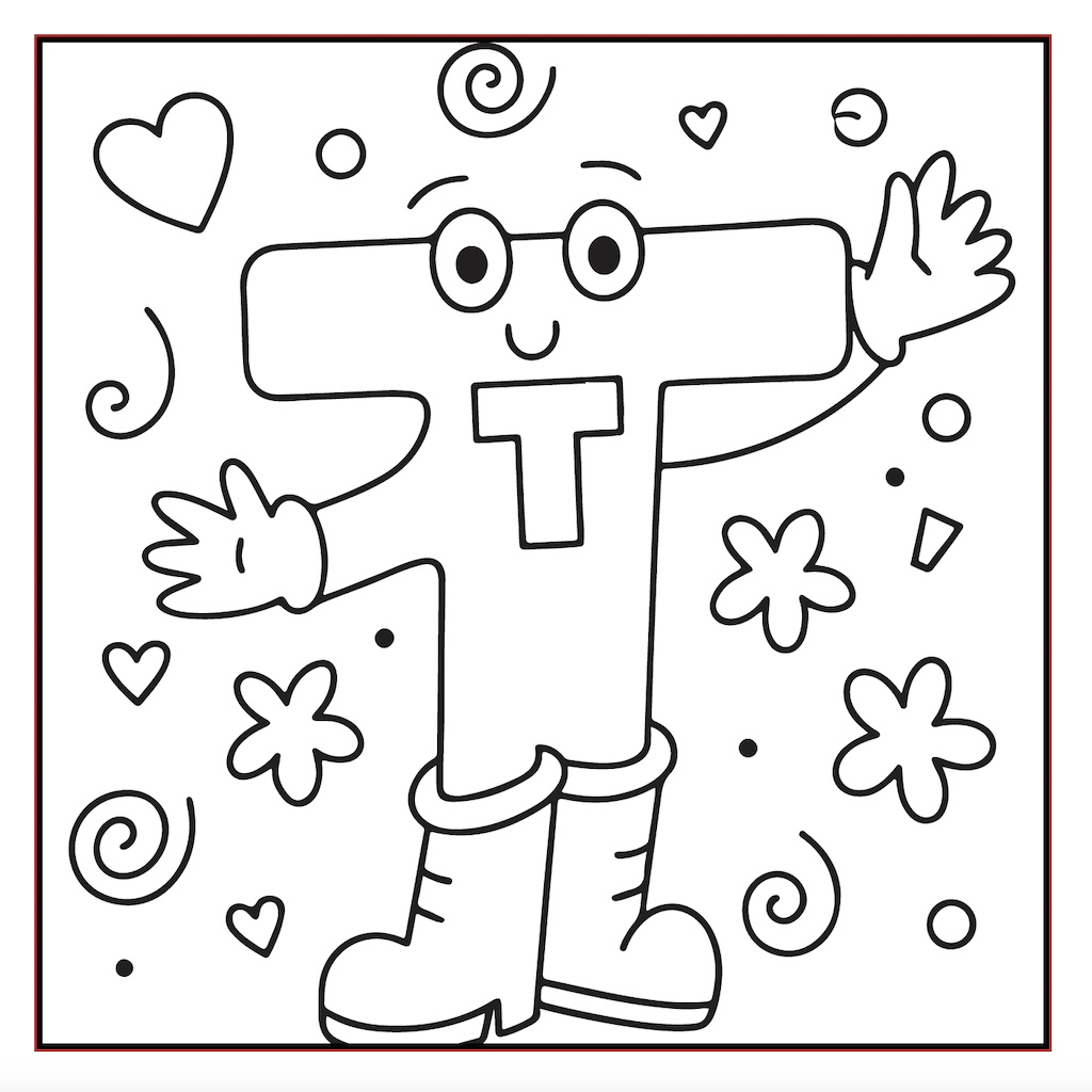 Prinditavate värvilehtede .pdf failis on 26 tähestiku (sisaldab Q, Z, X, W, Y, puuduvad täpitähed) pilti värvimiseks.